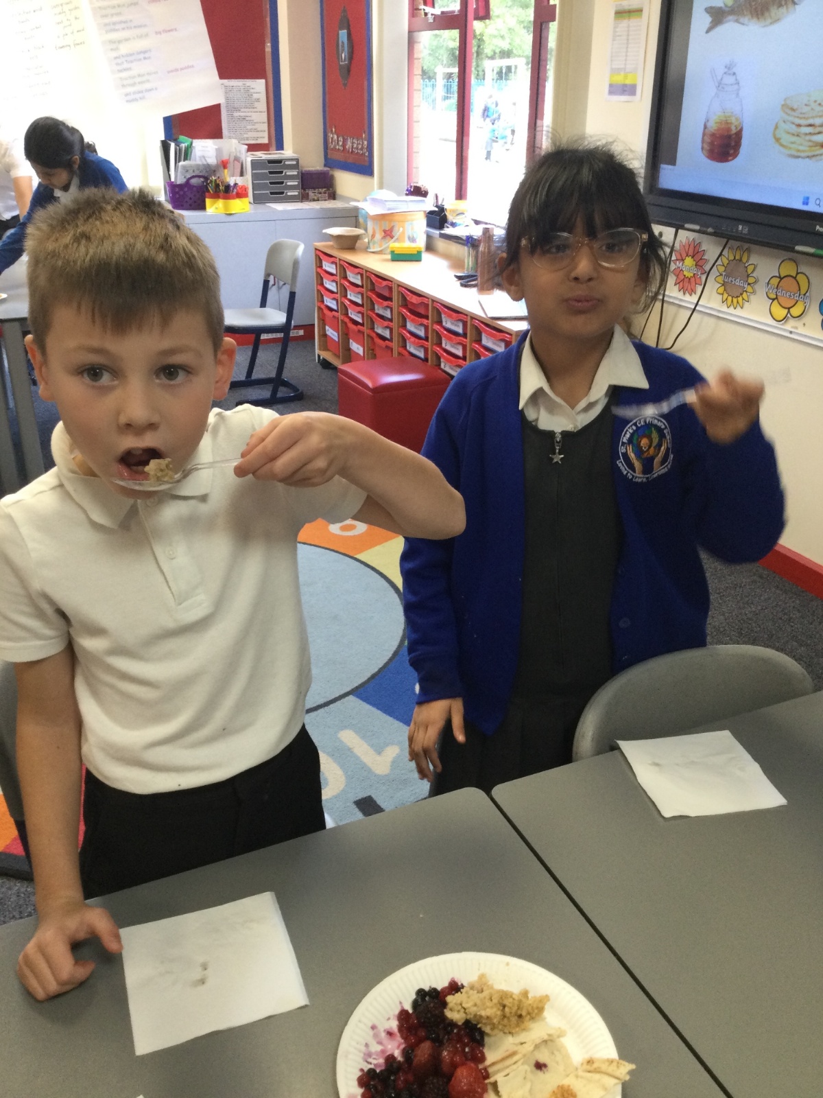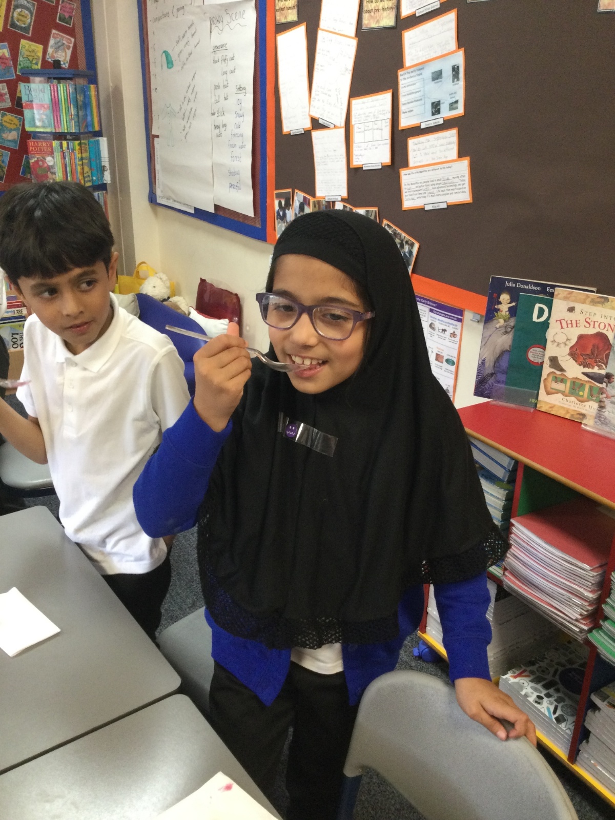 In history this week, the children have had the opportunity to experience a Stone Age meal. We tried fish, porridge, berries, honey and bread, before discovering how Stone Age people would have hunted and gathered their foods.